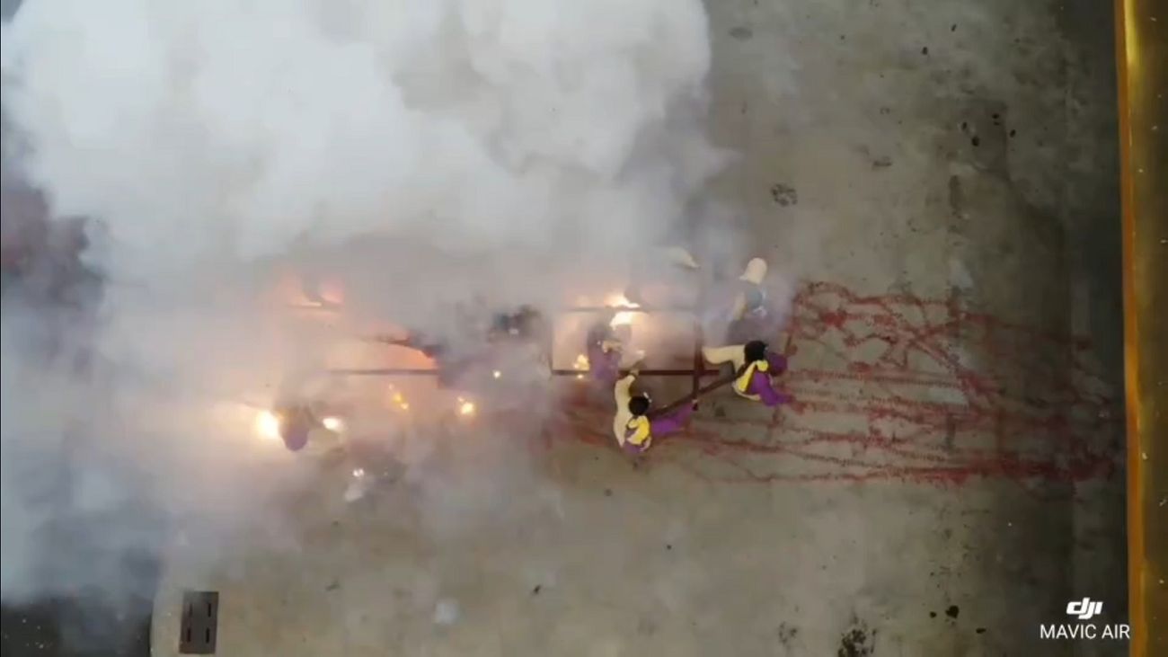 武轎班入廟踩炮